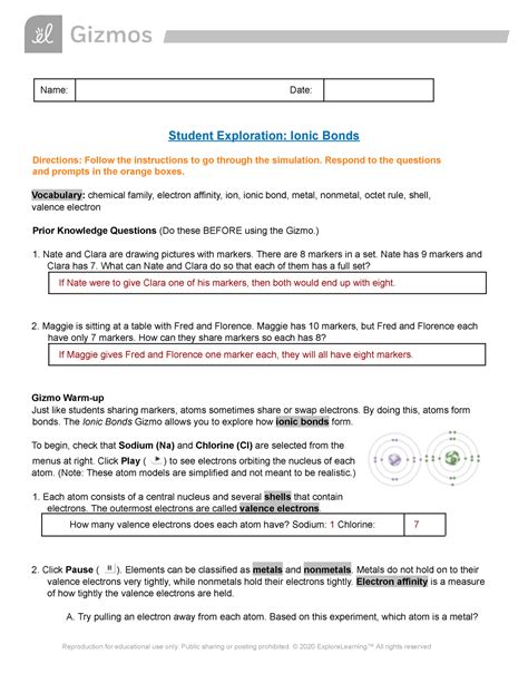 Download Gizmo Student Exploration Ionic Bonds Answers PDF